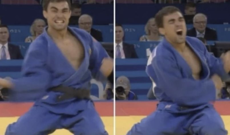 2024 파리올림픽 유도 남자 73㎏급 준결승에서 몰도바의 아딜 오스마노프가 이탈리아의 마누엘 롬바르도(25)를 상대로 동메달을 따낸 뒤 세리머니를 하다 어깨 부상을 입었다. [사진출처=브라질 gesortv 유튜브 캡처]