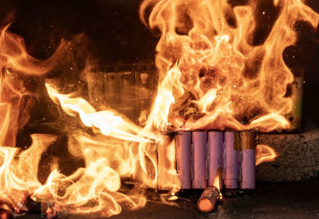 열폭주 현상으로 불이 난 원통형 리튬배터리. [사진출처=연합뉴스]