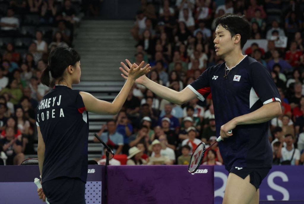 지난해 세계선수권대회 우승 조인 서승재-채유정은 이번 올림픽에서도 금메달 후보로 꼽혔으나 전날 준결승전에서 세계 8위인 후배팀 김원호(삼성생명)-정나은(화순군청)에게 덜미를 잡힌 데 이어 동메달 결정전도 내주며 시상대에 오르지 못했다.