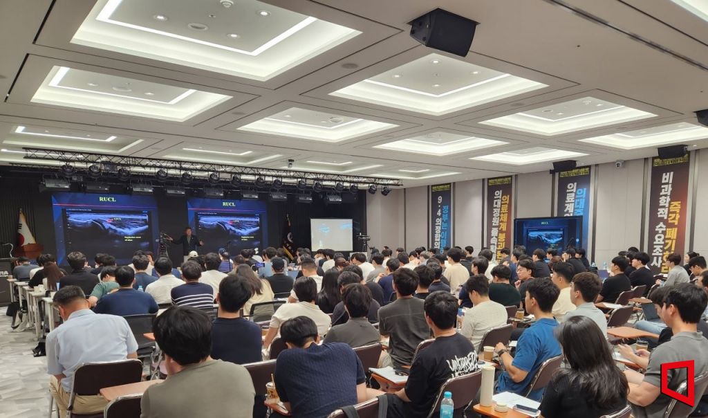 일요일인 4일 오전 8시40분께, 서울 용산구 대한의사협회(의협) 회관 대강당에서 열린 '사직 전공의 선생님들을 위한 근골격계 초음파 연수강좌'엔 사직 전공의들로 북새통을 이뤘다. 이들은 오랜만에 병원이 아닌 외부에서 동료들을 만난다는 반가움과 함께 새로운 공부를 한다는 기대감으로 가득했다. 강좌 시작을 기다리는 동안 수개월 만에 보는 다른 전공의들과 "잘 지내고 있냐"며 안부를 묻고, "더워도 집 밖에 나오니 좋다" "○○이도 오고 싶어했는데 자리가 이미 마감돼서 못 온다고 하더라"며 이야기꽃을 피웠다.