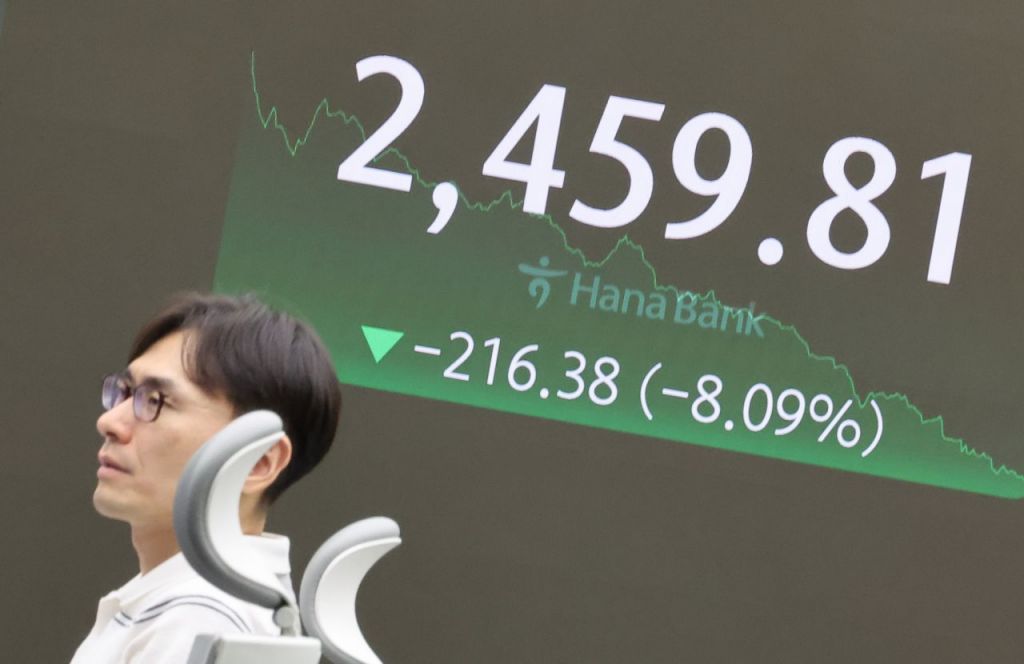 미국 인공지능(AI) 관련주 회의론에 미국 경기둔화 우려가 겹치면서 국내 증시가 패닉에 빠졌다. 코스피지수는 종가 기준 230포인트 이상 빠지며 역대 최대 낙폭을 갈아치웠다. 지수가 하락하면서 코스피 시가총액도 2000조원 이하로 쪼그라들었다.