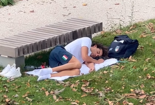 4일(현지시간) 뉴욕포스트 등 외신은 파리올림픽 100m 배영에서 금메달을 딴 이탈리아의 수영선수 토마스 세콘(23)이 공원의 잔디 위에서 낮잠을 자는 모습을 공개했다. 이 모습은 사우디아라비아 조정 선수 후세인 알리레자가 자신의 사회관계망서비스(SNS)에 세콘의 잠든 모습을 찍은 사진을 공개하면서 알려졌다. 사진을 보면 세콘은 공원 벤치 옆 잔디 위에 흰 수건을 깔고 누워, 신발을 벗어놓은 채 잠들어 있다.