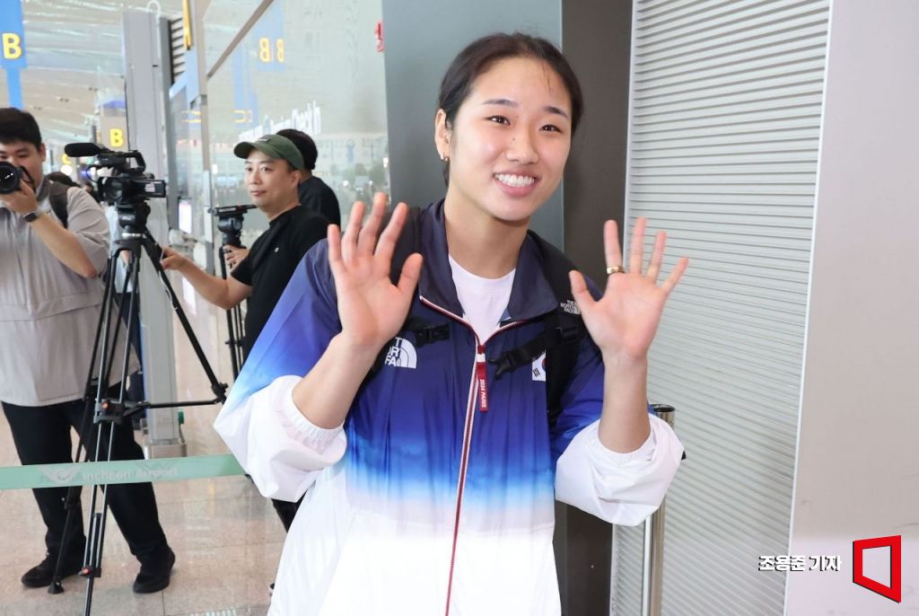 안세영이 지난달 12일 인천국제공항을 통해 출국하기에 앞서 밝은 표정을 하고 있다. 사진=조용준 기자 jun21@