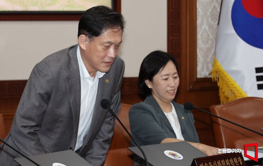 김태규 방송통신위원회 위원장 직무대행이 6일 서울 종로구 정부서울청사에서 열린 국무회의에 참석해 자리에 앉고 있다. 이날 회의에선 국회 본회의에서 야당이 강행 처리한 '방송4법'에 대한 재의요구권(거부권)을 심의, 의결할 예정이다. 사진=조용준 기자 jun21@