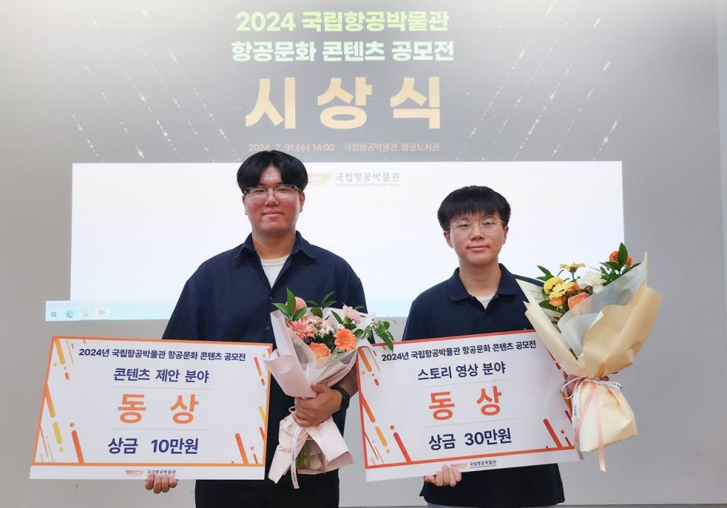 항공문화 콘텐츠 공모전에서 수상한 안은태, 신재승 학생.