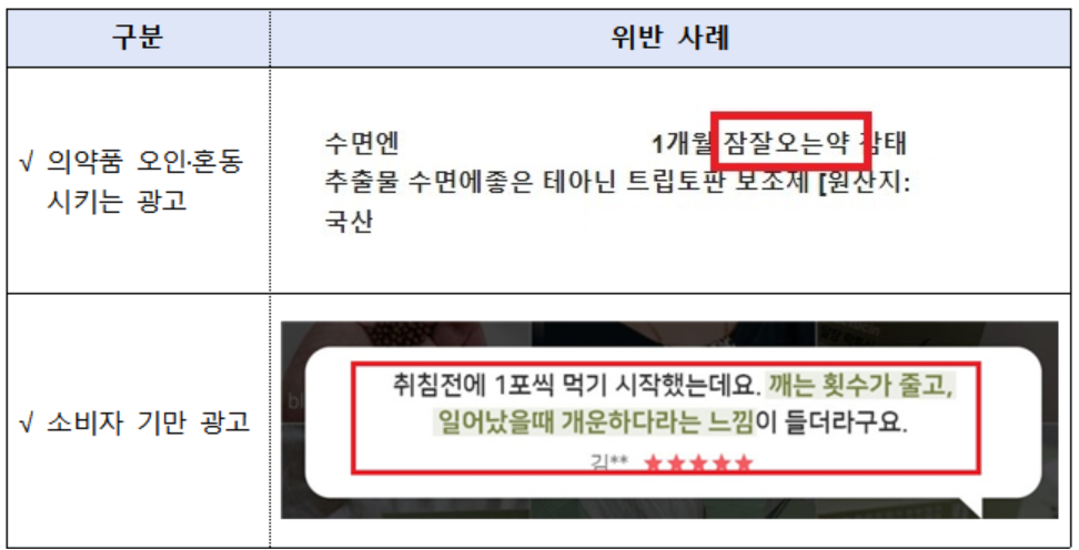 식약처는 여름철 열대야가 지속되면서 특정 식품이 수면 건강에 효능·효과가 있다는 광고가 증가함에 따라 온라인 게시물 200건을 점검해 이같이 적발했다고 밝혔다.