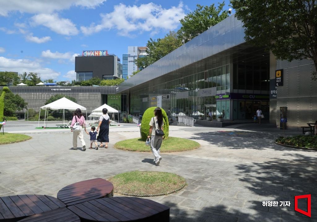 복합쇼핑몰 건축을 위해 폐쇄된 광주 유스퀘어 문화관. 같은 건물의 극장과 일부 시설은 여전히 운영중이고 많은 시민들이 찾아온다. 사진=허영한 기자