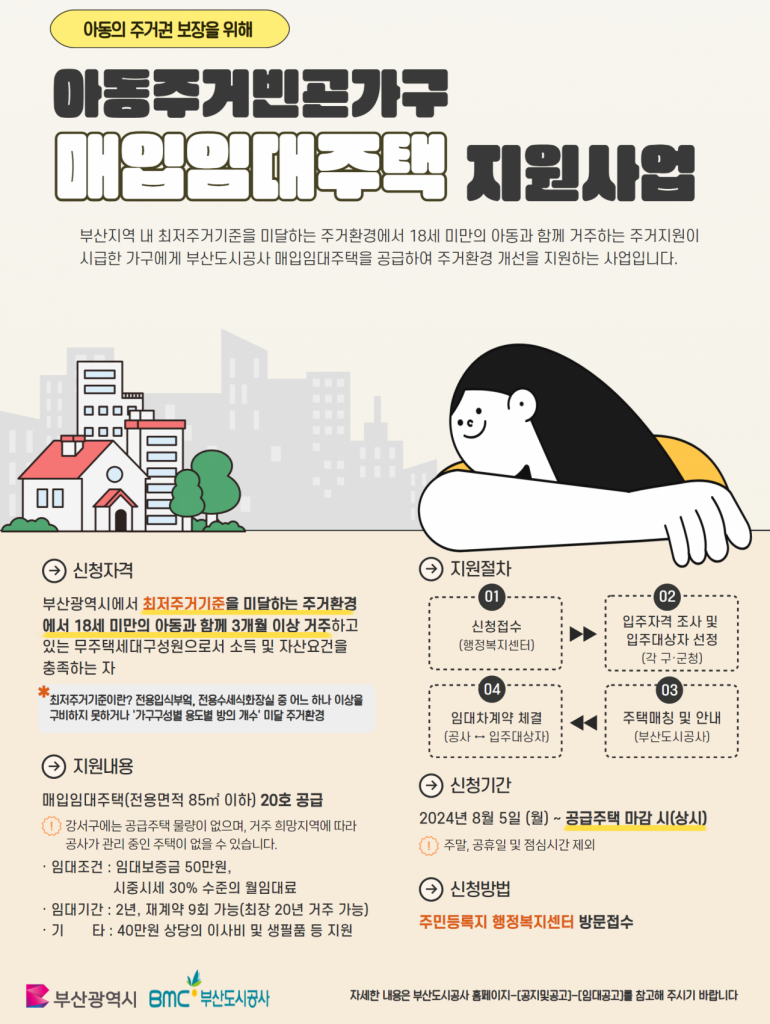 부산도시공사가 ‘아동주거빈곤가구 지원’ 매입임대주택 공급한다.