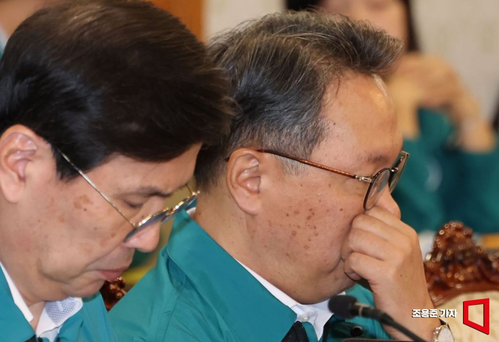 박민수 보건복지부 차관이 7일 서울 종로구 정부서울청사에서 열린 의사 집단행동 중앙재난안전대책본부 회의에 참석, 생각에 잠겨 있다. 사진=조용준 기자 jun21@