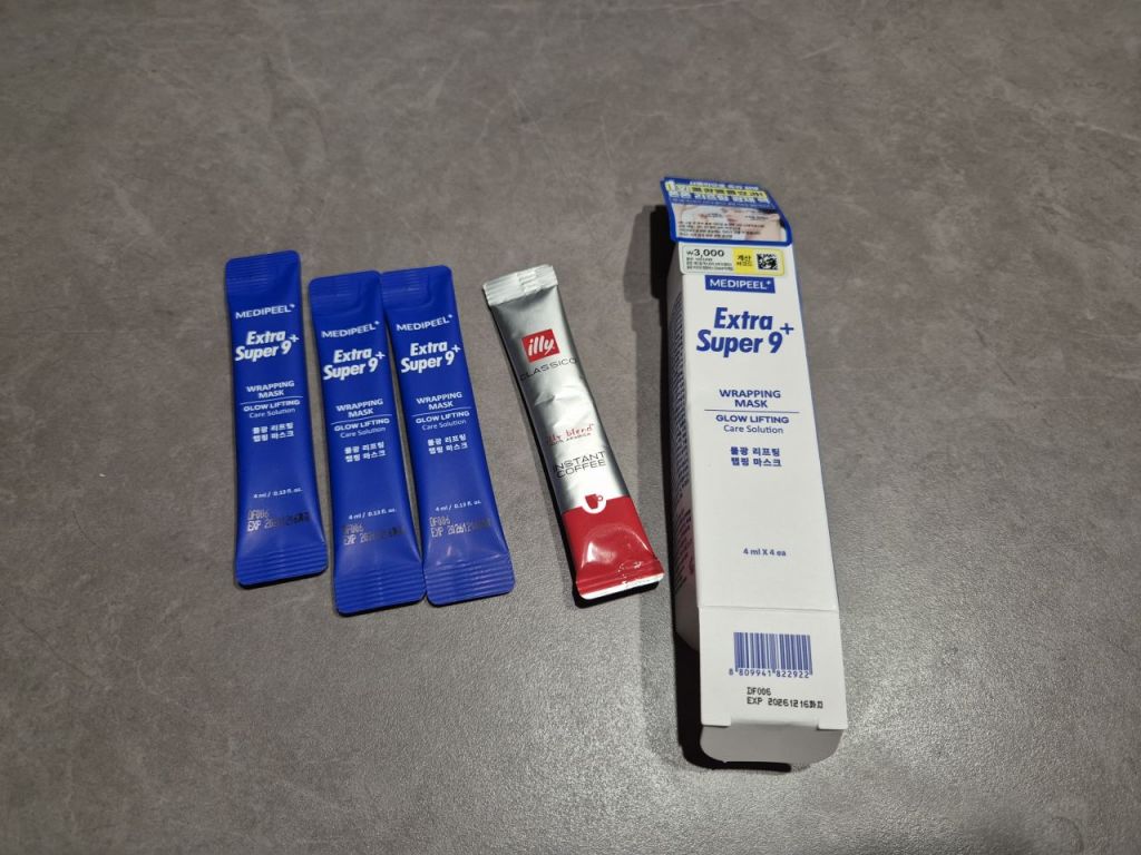 부푼 기대를 안고 직사각형 모양의 작은 상자를 뜯었다. 4회분의 팩은 한 포씩 포장된 인스턴트 커피와 닮았다. 이 제품의 가격은 3000원으로, 한 개당 750원꼴이다. 시트 마스크팩 한 개가 1000원대라는 점을 고려하면 가성비는 확실히 뛰어나다.