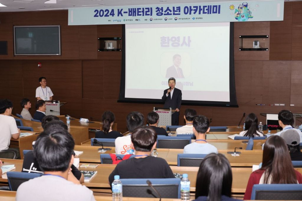 포항시가 8일 포스텍 국제관에서 대한민국 미래 먹거리를 책임질 이차전지 꿈나무 양성을 위한 ‘2024 K-배터리 청소년 아카데미’를 개최했다.