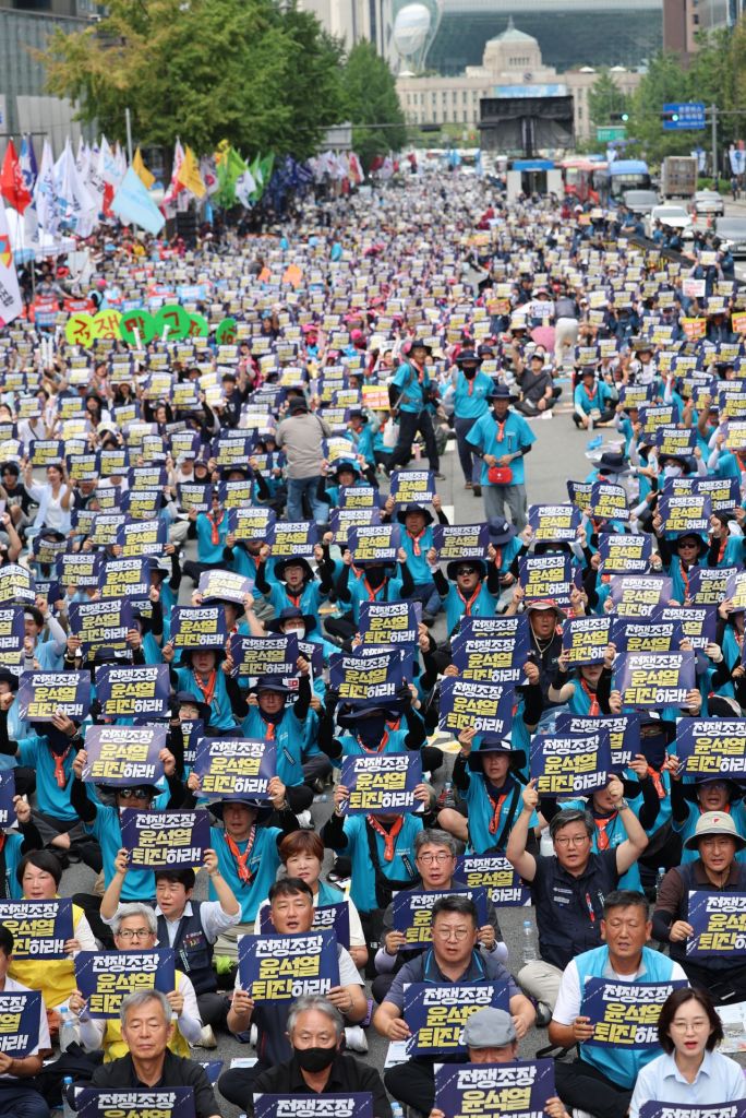 10일 서울 도심에서 최근 국회를 통과한 '노란봉투법'과 '방송4법'의 즉각 공포를 촉구하는 목소리가 울려 퍼졌다.
