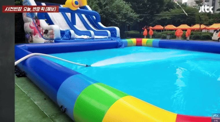 서울 송파구 한 아파트에서 소방용수를 끌어와 물놀이장 물을 채웠다는 주장이 제기됐다. [사진=JTBC '사건반장']