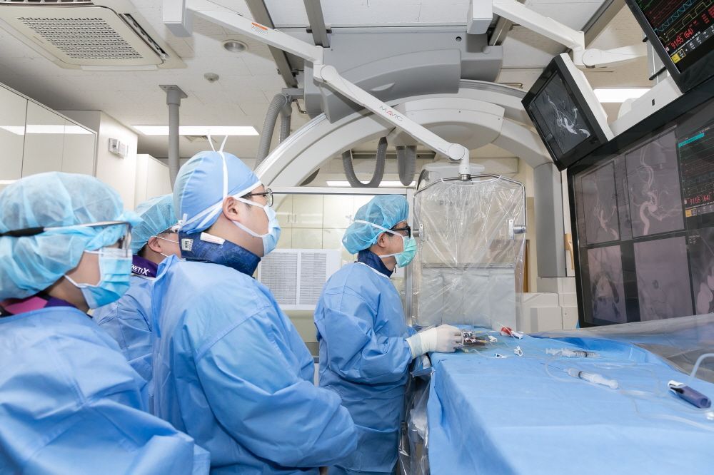순천향대천안병원 신경외과 뇌혈관내치료팀의 시술 모습.