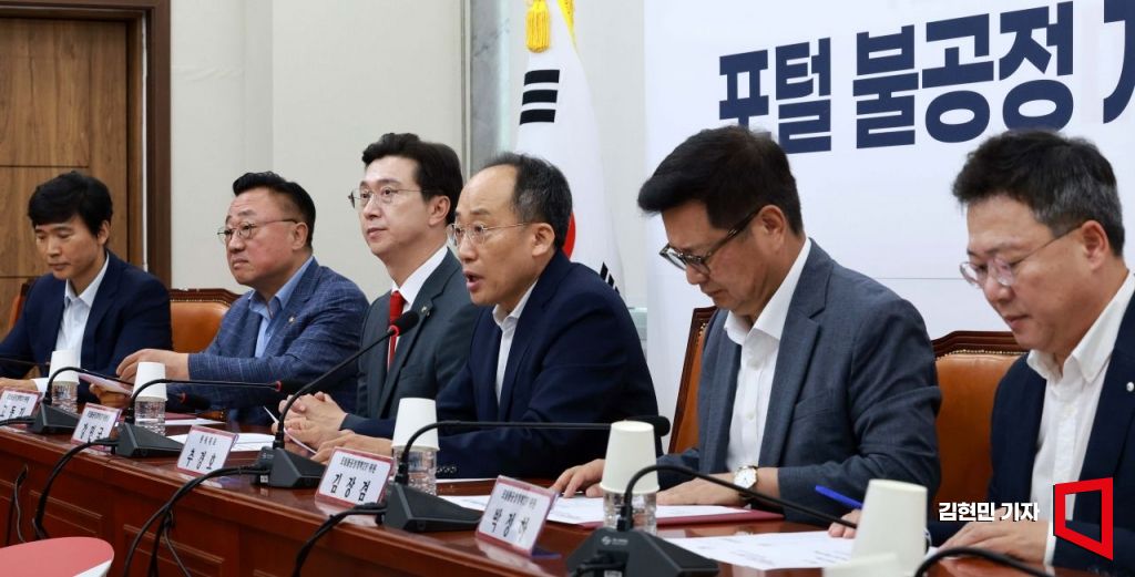 추경호 국민의힘 원내대표가 12일 국회에서 열린 ‘포털 불공정 개혁 TF’ 임명장 수여식 및 1차 회의에서 발언하고 있다. 사진=김현민 기자 kimhyun81@