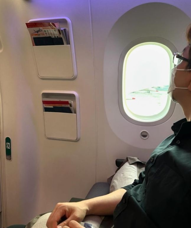 박 회장은 지난 8일 자신의 인스타그램을 통해 "한국 가는 중"이라며 항공기에 탑승한 사진을 올렸다. 공개된 사진을 보면 박 회장은 이코노미석의 비상구 좌석으로 추정되는 곳에 탑승했다.