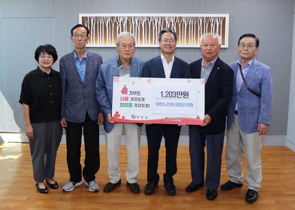 대한노인회 영양군지회는 매년 자발적으로 성금을 모금해 영양군인재육성장학회와 경북사회복지공동모금회에 기부하는 등 어려운 이웃을 위한 나눔 활동을 지속적으로 이어오고 있다.