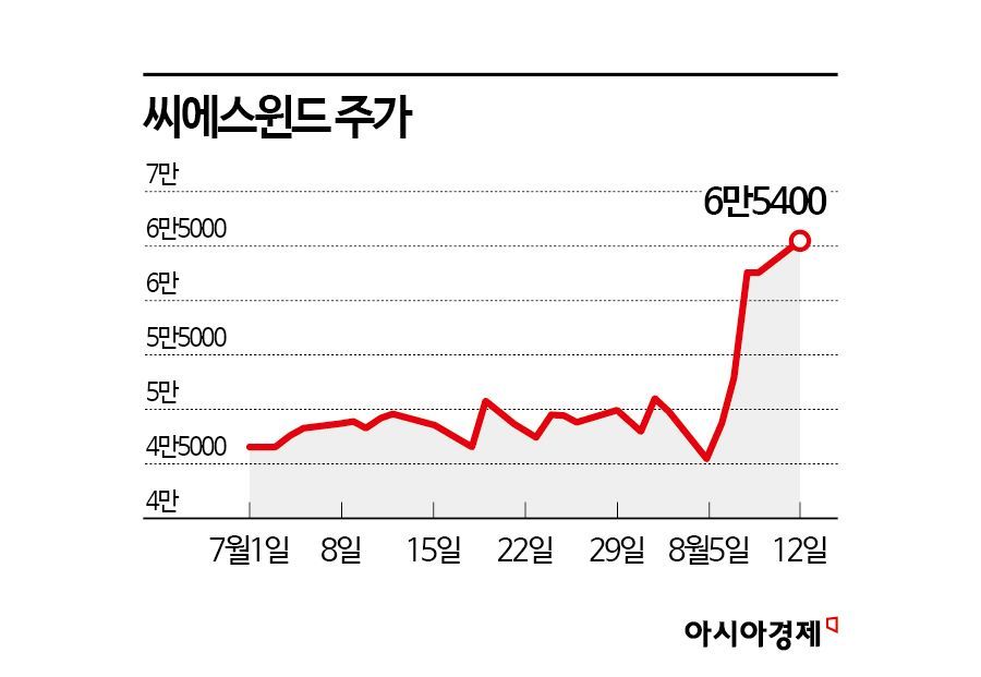 13일 금융투자업계에 따르면 씨에스윈드 주가는 이달 들어 37.3% 올랐다. 같은 기간 코스피가 5.5% 하락한 것을 고려하면 시장 대비 수익률은 42.8%포인트에 달한다.