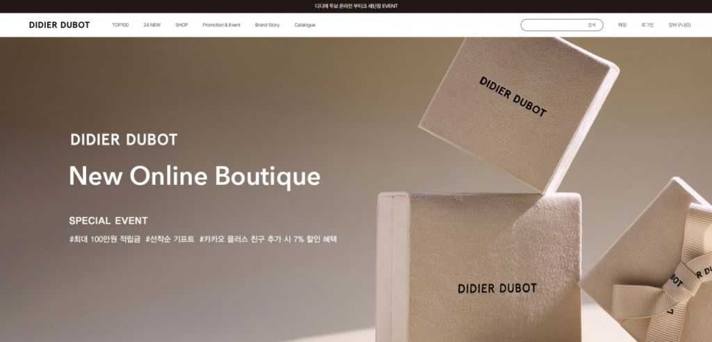 디디에 두보는 이번 온라인 부티크 오픈을 기념해 오는 31일까지 구매 금액별 스페셜 적립금 지원, 스와진주 귀걸이 선착순 증정, 카카오 플러스 친구 추가 시 쿠폰 제공 등 다양한 이벤트를 진행한다.