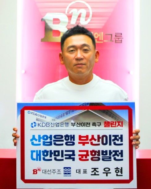 부산 향토기업 대선주조의 조우현 대표가 KDB산업은행 부산 이전 촉구를 위한 챌린지에 참여했다.