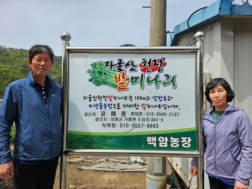 수상자 부부는 1984년 소규모 벼농사와 밤농사 위주 영농으로 농업을 시작해 이후 밭미나리 재배 기술을 차근차근 습득한 후 미나리 농사를 본격적으로 시작했다. 이후 작목반을 구성하며 점차 규모를 넓혀갔고 회원 수 30명에 달하는 ‘자굴산청정밭미나리’ 작목반을 결성했다.