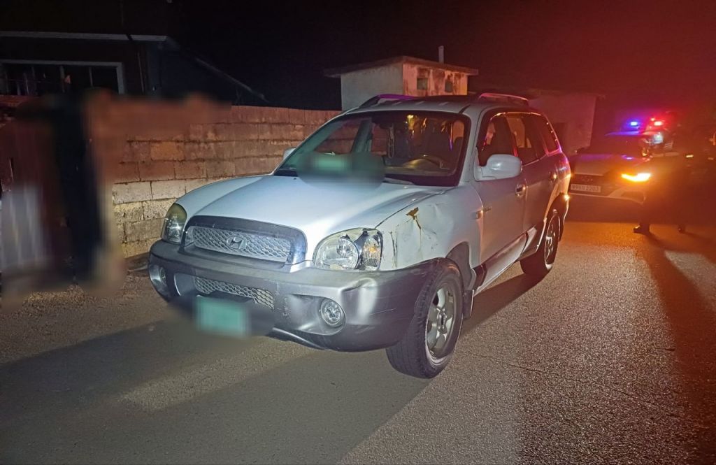 술을 마시고 운전하다 보행자를 치고 달아난 운전자의 차량이 길가에 서 있다. [사진제공=경남경찰청]