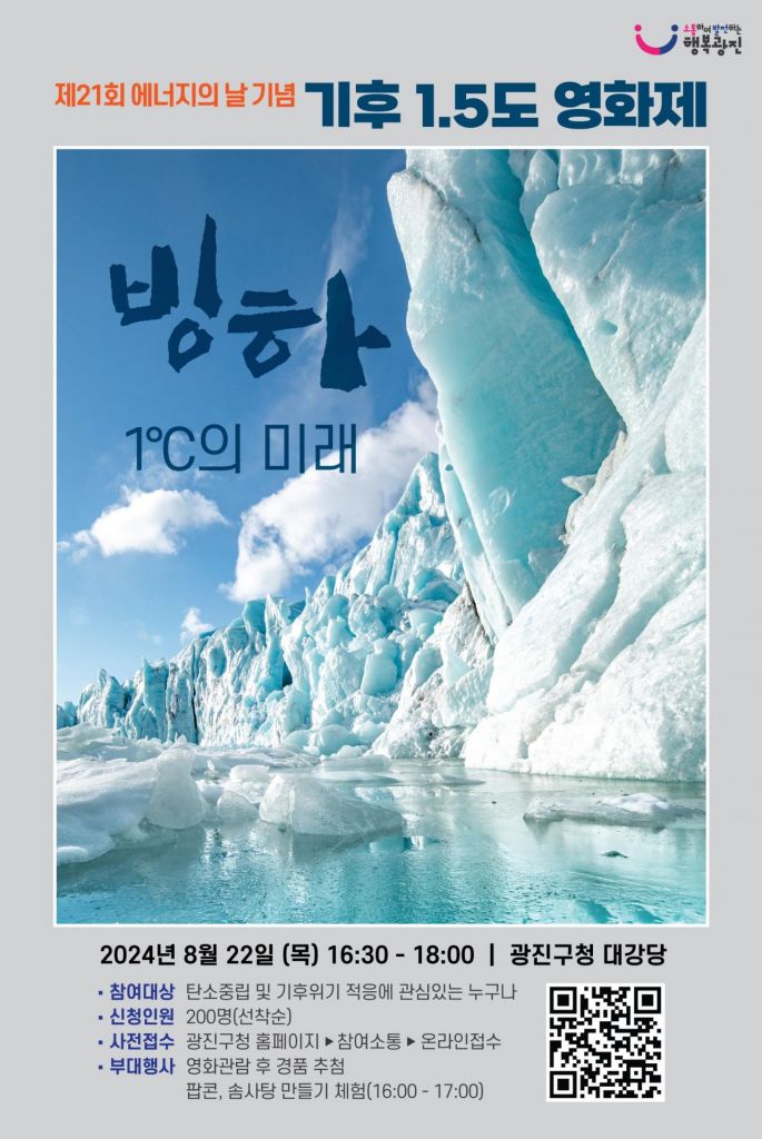 광진구(구청장 김경호)가 22일 구청 대강당에서 제21회 에너지의 날을 맞아 ‘기후 1.5도 영화제’를 개최한다.