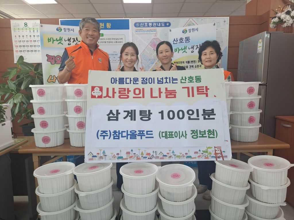 경남 창원특례시 마산합포구 산호동은 참다올푸드에서 산호동 ‘바냇 냉장고’ 에 삼계탕을 전달했다고 15일 밝혔다.