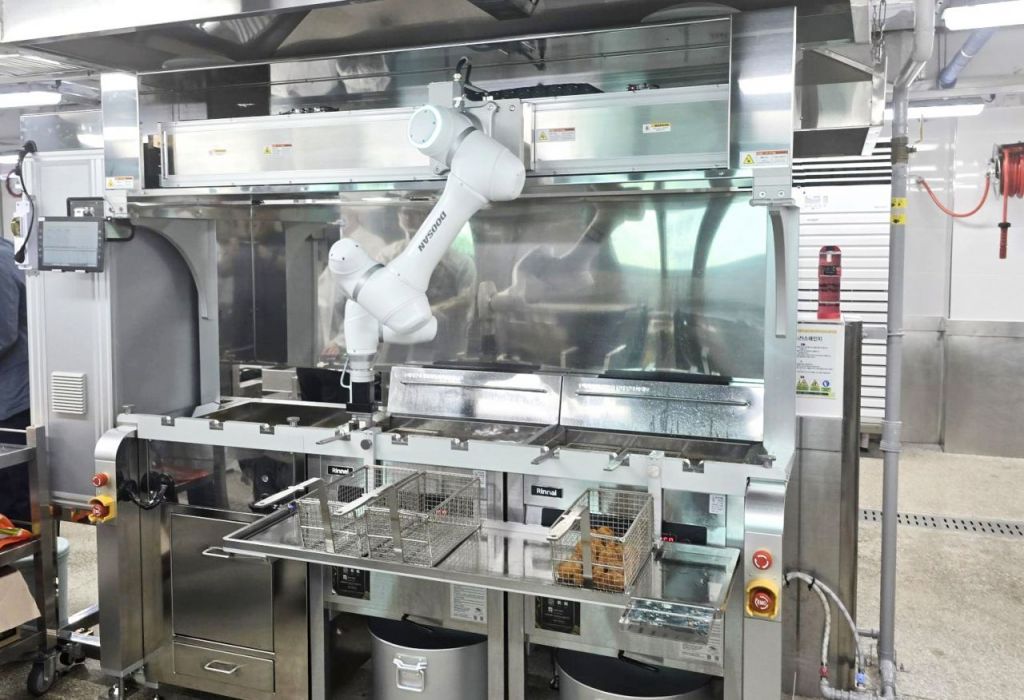 두산로보틱스는 977로보틱스와 함께 강원특별자치도 춘천시 소재 춘천한샘고등학교에 단체급식 튀김솔루션을 공급한 바 있다.