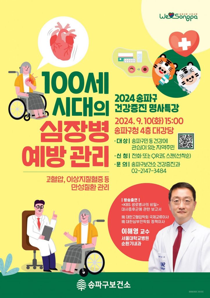 특강은 건강에 관심 있는 모든 구민을 대상으로 무료로 진행되며, 참여 신청은 송파구 건강증진과로 전화하거나 QR코드를 통해 사전 접수하면 된다. 300명 선착순 모집한다.