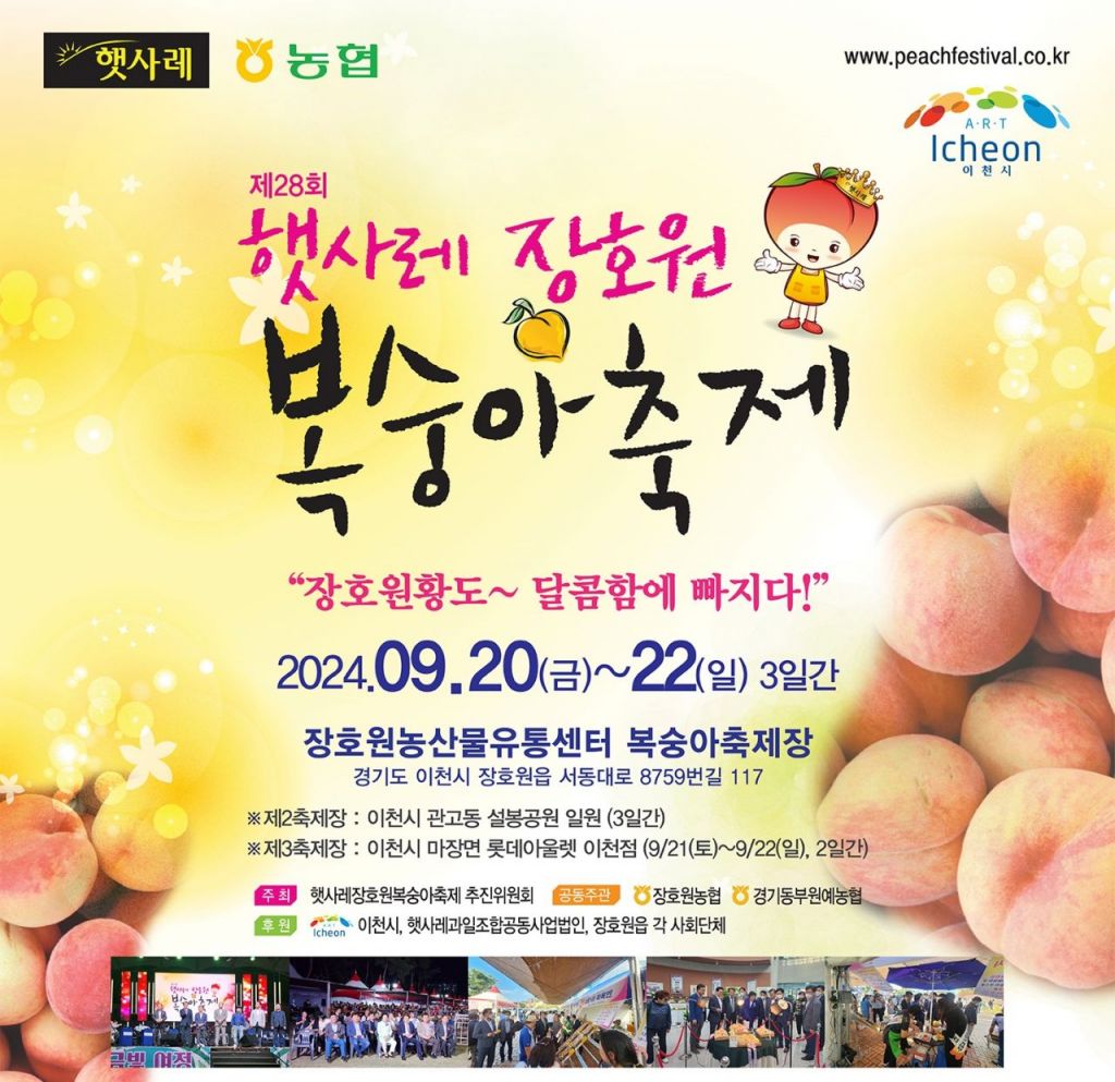 경기도 이천시는 다음달 20일부터 22일까지 사흘간 장호원 햇사레 농산물 산지유통센터 복숭아축제장에서 '제28회 햇사레 장호원복숭아 축제'를 개최한다.