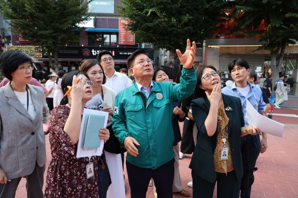 이날 박강수 마포구청장과 관계 부서 직원들은 홍대 레드로드 R1 구간부터 R6 구간까지 걸으며 전광판 설치 위치와 방향 등을 살펴보는 시간을 가졌다.