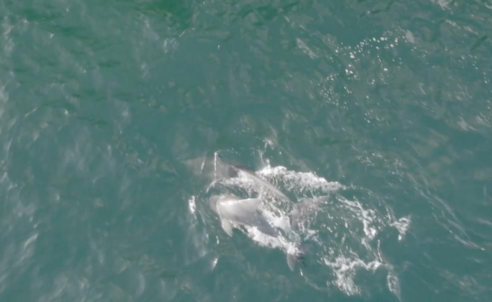 몸에 감겨 있던 낚싯줄 절단 후 어미와 함께 헤엄치는 종달이<br /> [사진출처=제주돌고래긴급구조단 제공, 연합뉴스]