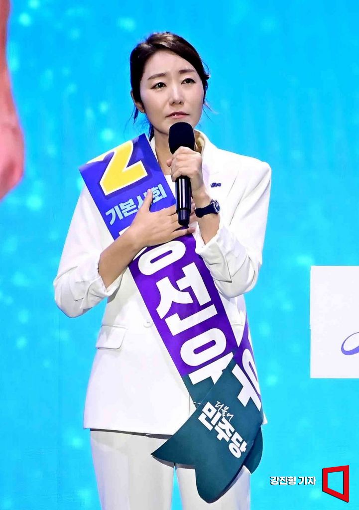 강선우 더불어민주당 최고위원 후보가 18일 오후 서울 송파구 올림픽공원 KSPO돔에서 열린 더불어민주당 제1차 제1차 정기전국당원대회에서 정견발표를 하고 있다.