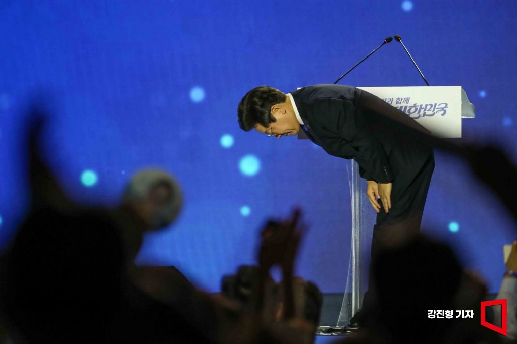 이재명 더불어민주당 당대표 당선인이 18일 서울 송파구 올림픽공원 KSPO돔에서 열린 '2024년 더불어민주당 제1차 정기전국당원대회'에서 수락연설을 마친 뒤 당원들에게 인사하고 있다.