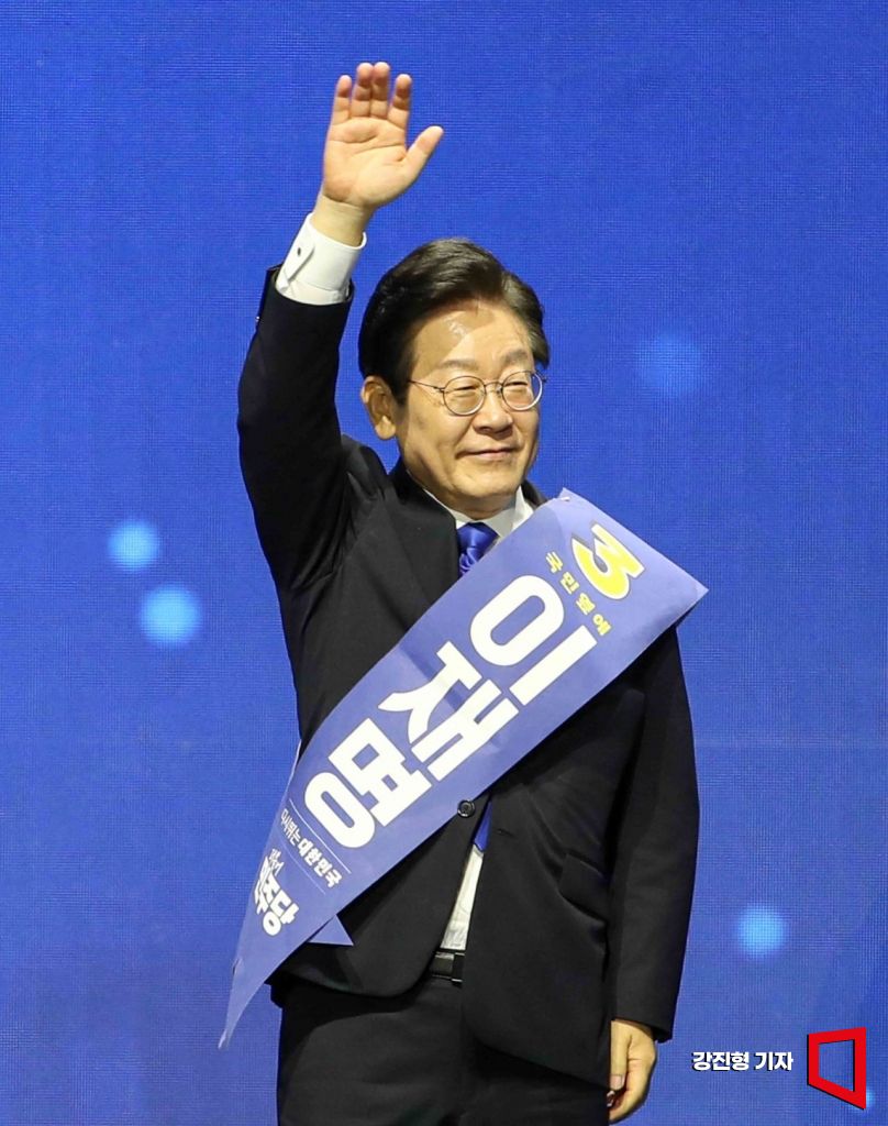 이재명 더불어민주당 당대표 당선인이 18일 서울 송파구 올림픽공원 KSPO돔에서 열린 '2024년 더불어민주당 제1차 정기전국당원대회'에서 수락연설을 마친 뒤 당원들에게 인사하고 있다.