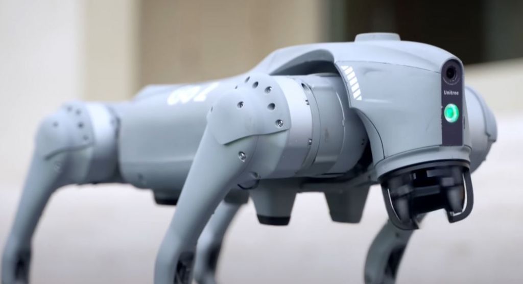 로봇 개는 중국 '유니트리'에서 개발한 고투프로(Go2Pro) 로봇 개로 확인됐다. [이미지출처=유튜브 캡처]