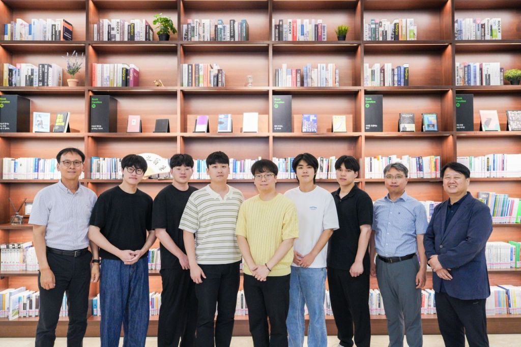 연구진. (왼쪽부터 김진영 교수, 윤창현 연구원, 송지원 연구원, 신윤섭 박사(제1저자), 이재휘 연구원(제1저자), 이동민 연구원, 김민성 연구원, 이근식 교수, 김동석 교수).