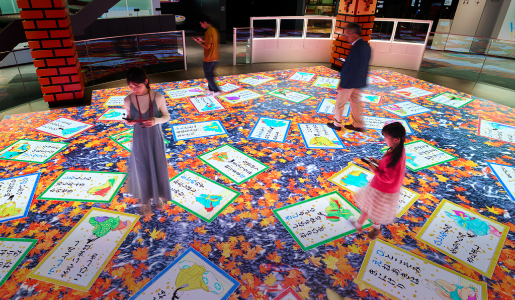 닌텐도박물관 1층 바닥에는 햐쿠닌잇슈를 즐길 수 있다. [사진제공=닌텐도]