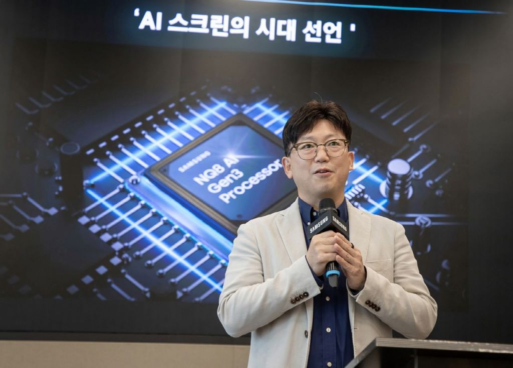 삼성전자 수원사업장 디지털연구소에서 용석우 삼성전자 영상디스플레이사업부 사장이 'AI 스크린'에 대해 설명하고 있다. [사진제공=삼성전자]