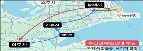 ‘부산광복원정대’는 제79주년 광복절을 맞아, 타국에서 헌신하신 애국선열들의 독립운동 발자취를 돌아보고, 숭고한 독립운동 정신을 되새기기 위해 올해 처음 시작한다. 올해는 중국 상해와 항주 등의 독립운동 사적지를 탐방한다.