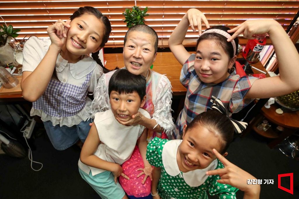 안은미 무용가가 19일 서울 용산구 빙고180에서 꿈의 무용단 소속 어린이들과 인터뷰에 앞서 포즈를 취하고 있다. 사진=강진형 기자aymsdream@