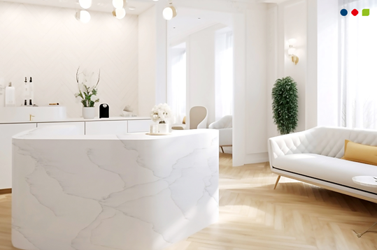 롯데케미칼 '프리미에르 컬렉션' 라르고(Largo)가 적용된 인포데스크. 사진제공=롯데케미칼
