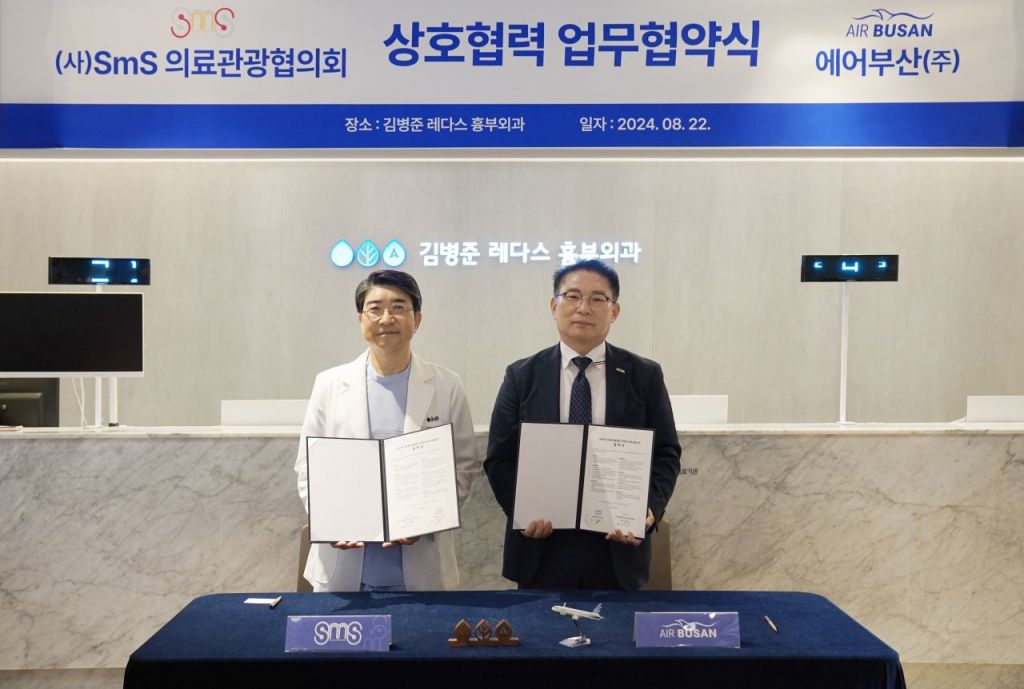 SmS 의료관광협의회는 에어부산 탑승객을 대상으로 의료비 할인과 시술 서비스 지원 등의 혜택을 제공하고 에어부산 임직원을 대상으로도 의료 서비스 혜택을 제공한다. 또 양사가 보유한 광고 채널을 활용해 마케팅·프로모션 지원에 협력할 예정이다.