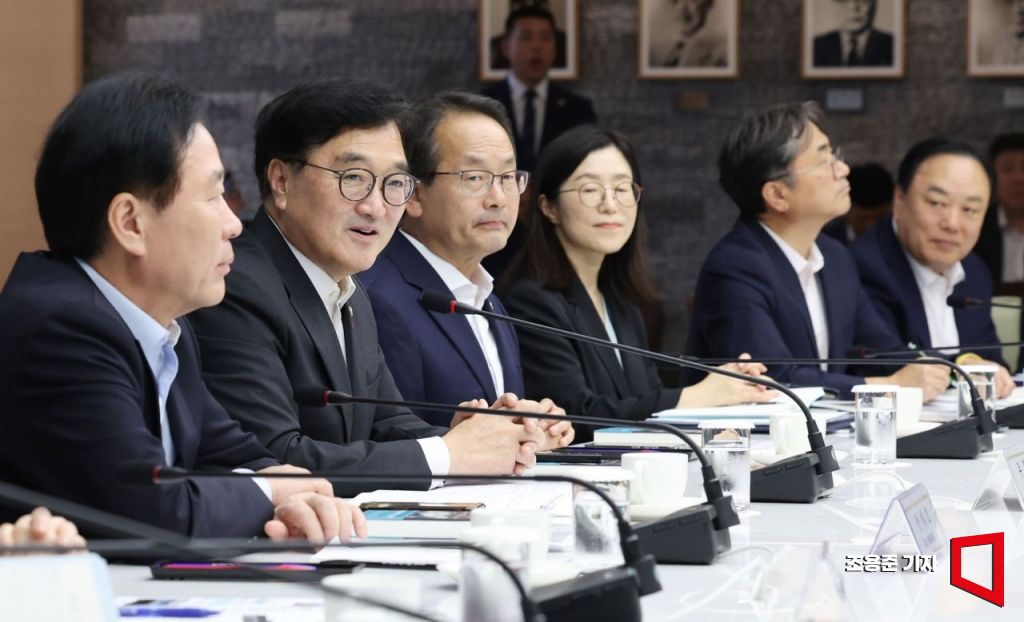 우원식 국회의장이 23일 서울 중구 대한상공회의소에서 열린 사회적 대화를 위한 국회의장-대한상의 간담회에서 인사말을 하고 있다. 사진=조용준 기자 jun21@