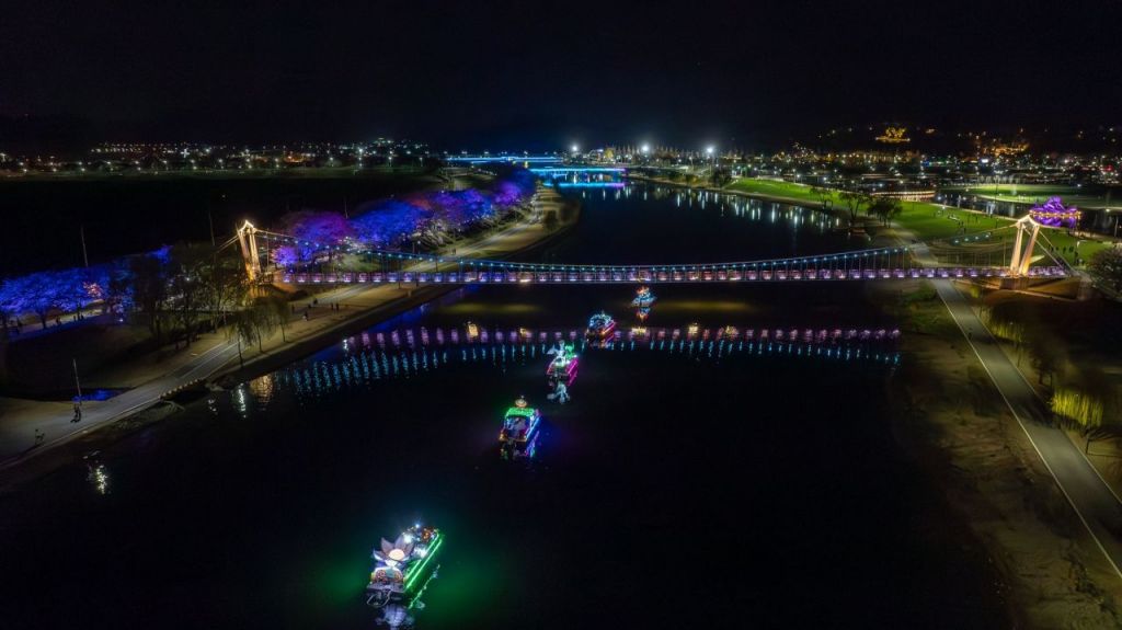 동천변에서 산책을 하면서는 주변 야경과 도심지 불빛이 어우러진 형형색색의 퍼레이드를 만나는 행운도 경험할 수 있다.