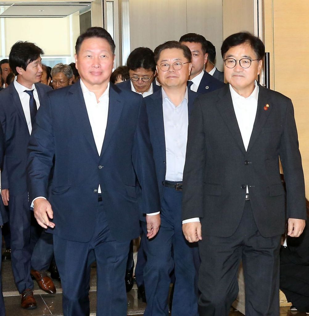 국회에서는 우 의장과 함께 더불어민주당 정태호(기획재정위 간사)·강준현(정무위 간사) 의원, 진선희 국회사무처 입법차장 등이, 대한상의에서는 최 회장을 비롯해 대한·서울상의 회장단 14명이 참석했다.