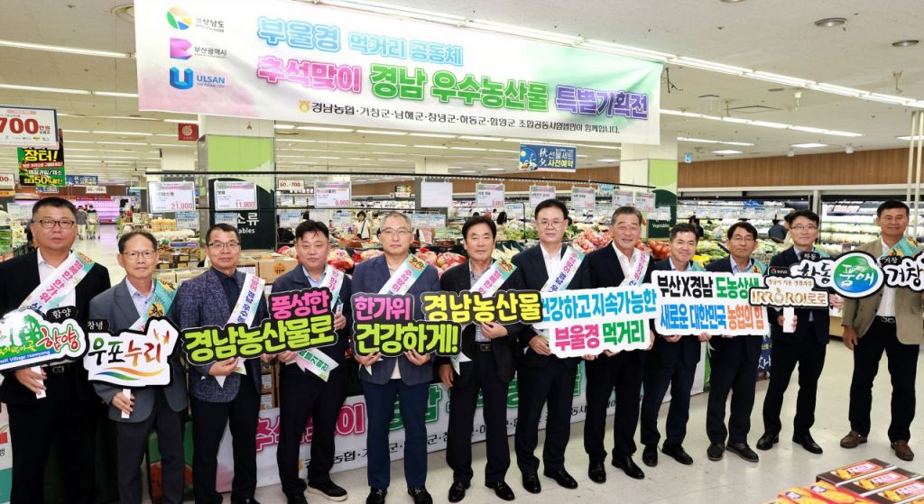 경상남도와 경남농협이 23일 추석을 맞이하여 경남 우수농산물 판매 활성화를 위한 부산·울산·경남 권역 농협 하나로마트를 대상으로 특별기획전을 마련하고 ‘경남 우수농산물 특별기획전 개장식’을 농협 하나로마트 부산점에서 개최했다.