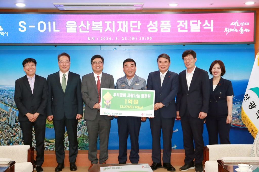 에쓰오일 울산복지재단은 23일 오후 3시 울산시청에서 추석맞이 사랑의 쌀 1억원 상당을 울산사회복지공동모금회에 전달했다.