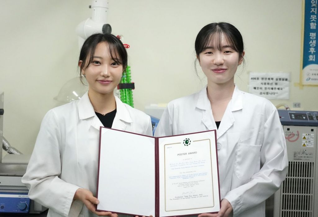 ‘한국생명과학회 국제학술대회’서 포스터 발표 우수상을 받은 조미건(왼쪽), 김효은 대학원생.